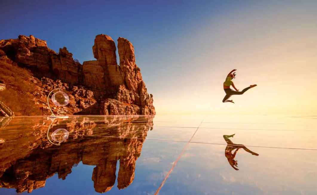 漫步云端360° ,在最美的天际遇见最美的你。天空之镜位于白石山海拔1900米游线,是网红和艺 术的碰撞与融合,脚踩蓝天白云,周遭群山映衬,镜中有诗,亦有远方。